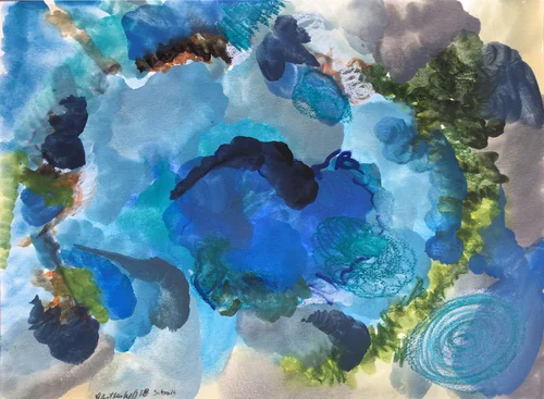 2017 Watercolor and crayon on paper. 11" x 15" Sloan Kettering corp collection