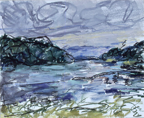I tend to work directly from scenery, then I might loosen up, and try a more interpretive gesture. Like different poses in life drawing.”